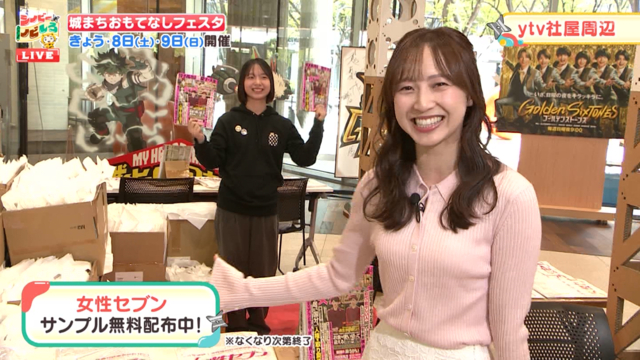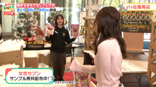 穿く前の足と、魔法のストッキングを穿いた後の足を披露している、この女性セブンの